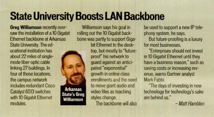 Automation Outfitters has over 25 years of experience in advanced network design. No job is too small or too large. The image below is an excerpt from an article in Computer World Magazine December 23, 2002 edition. Automation Outfitters not only understands technology, but we also understand how technology impacts your life style.